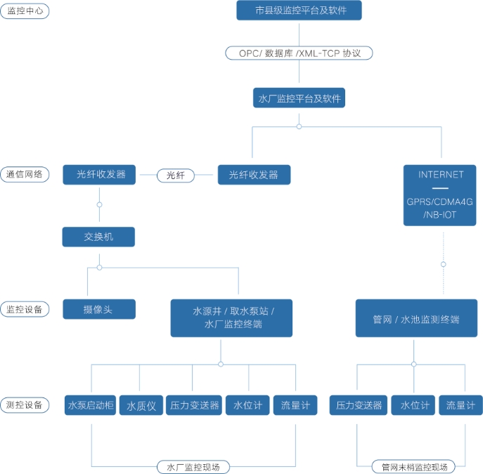 農(nóng)村飲水安全控制系統(tǒng)以計(jì)劃、計(jì)量、監(jiān)控、保護(hù)農(nóng)村飲水安全為主要任務(wù),執(zhí)行標(biāo)準(zhǔn)化和數(shù)字化綜合管理,實(shí)現(xiàn)農(nóng)村飲水安全的科學(xué)決策能力。系統(tǒng)主要包括地區(qū)概況、規(guī)劃計(jì)劃、水質(zhì)監(jiān)控、流量監(jiān)控、地下水監(jiān)控、工程建設(shè)、運(yùn)行管理、檔案管理、通知公告、網(wǎng)上辦公等業(yè)務(wù)功能模塊。